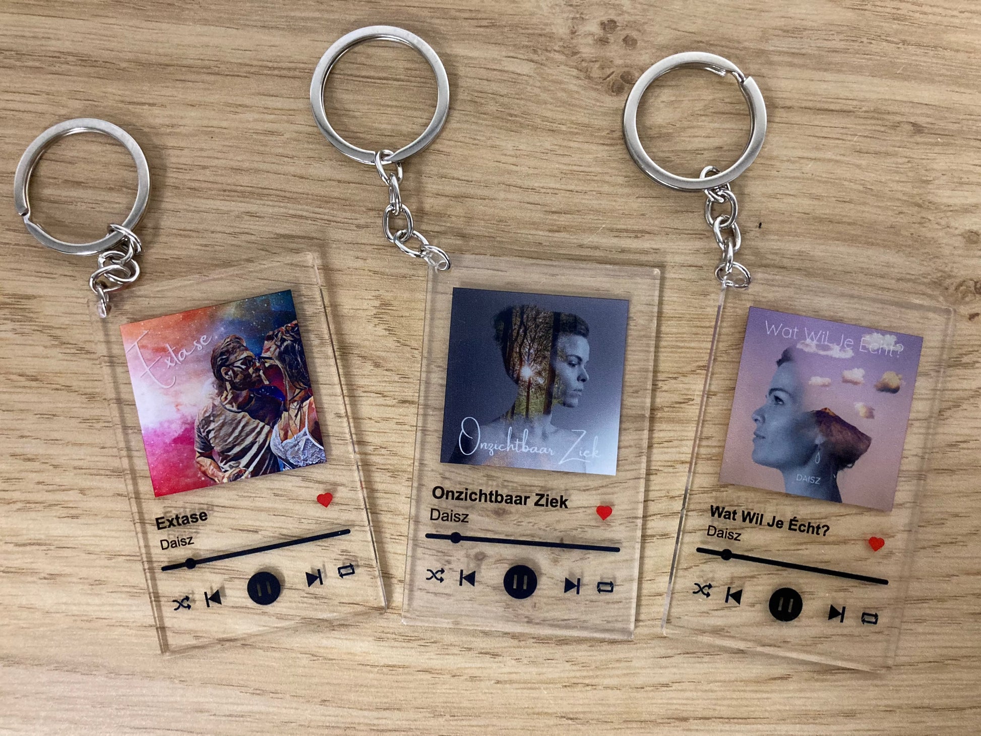 Kies een song waar jij blij van wordt, nu als spotify sleutelhanger.